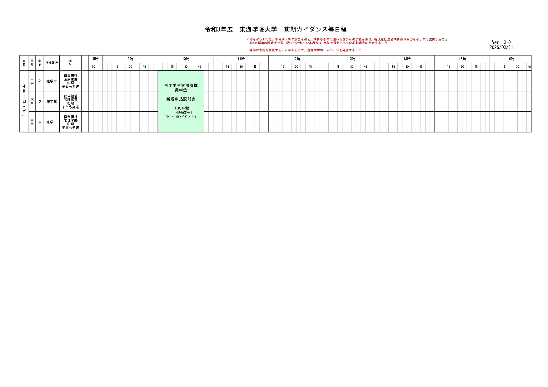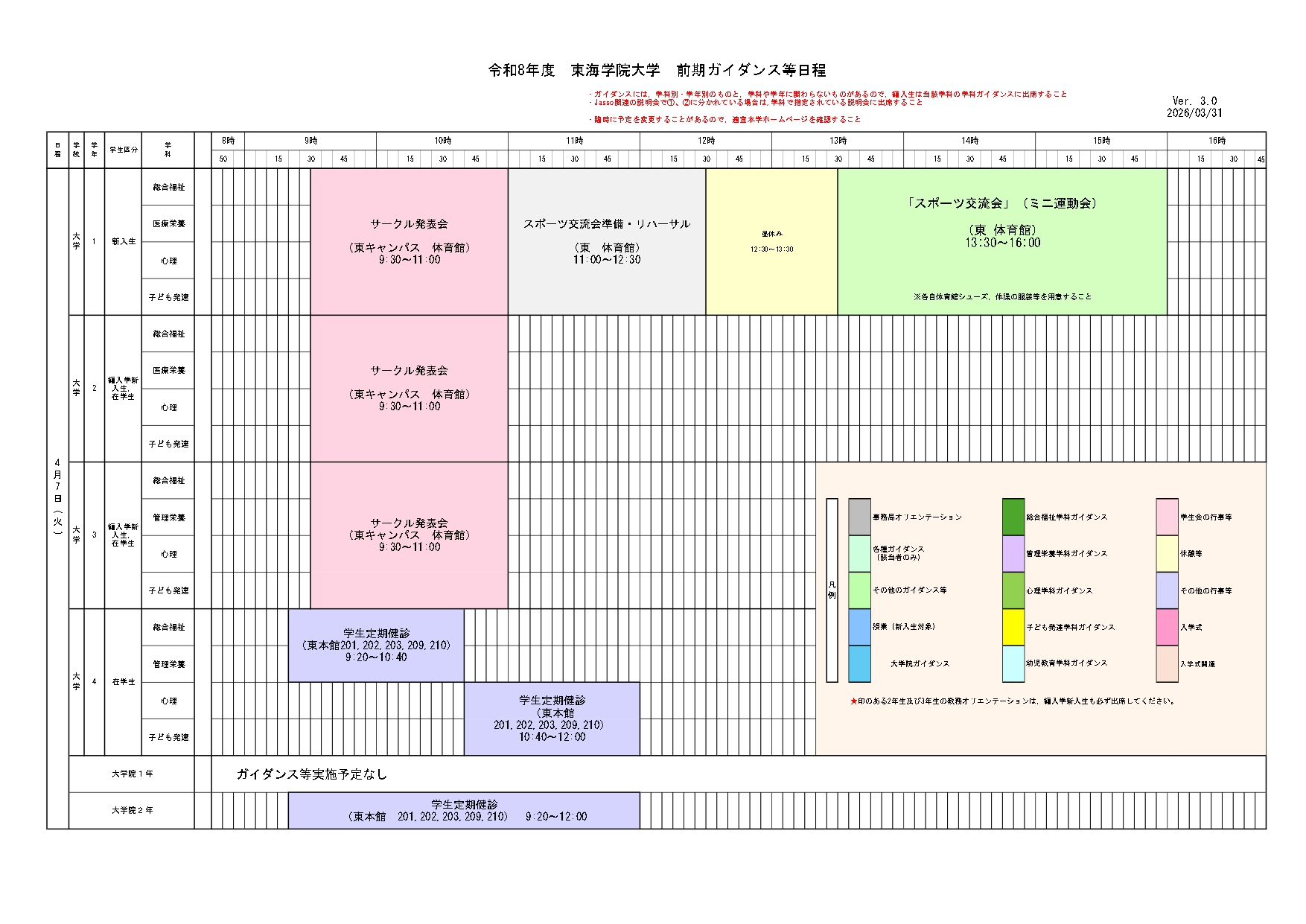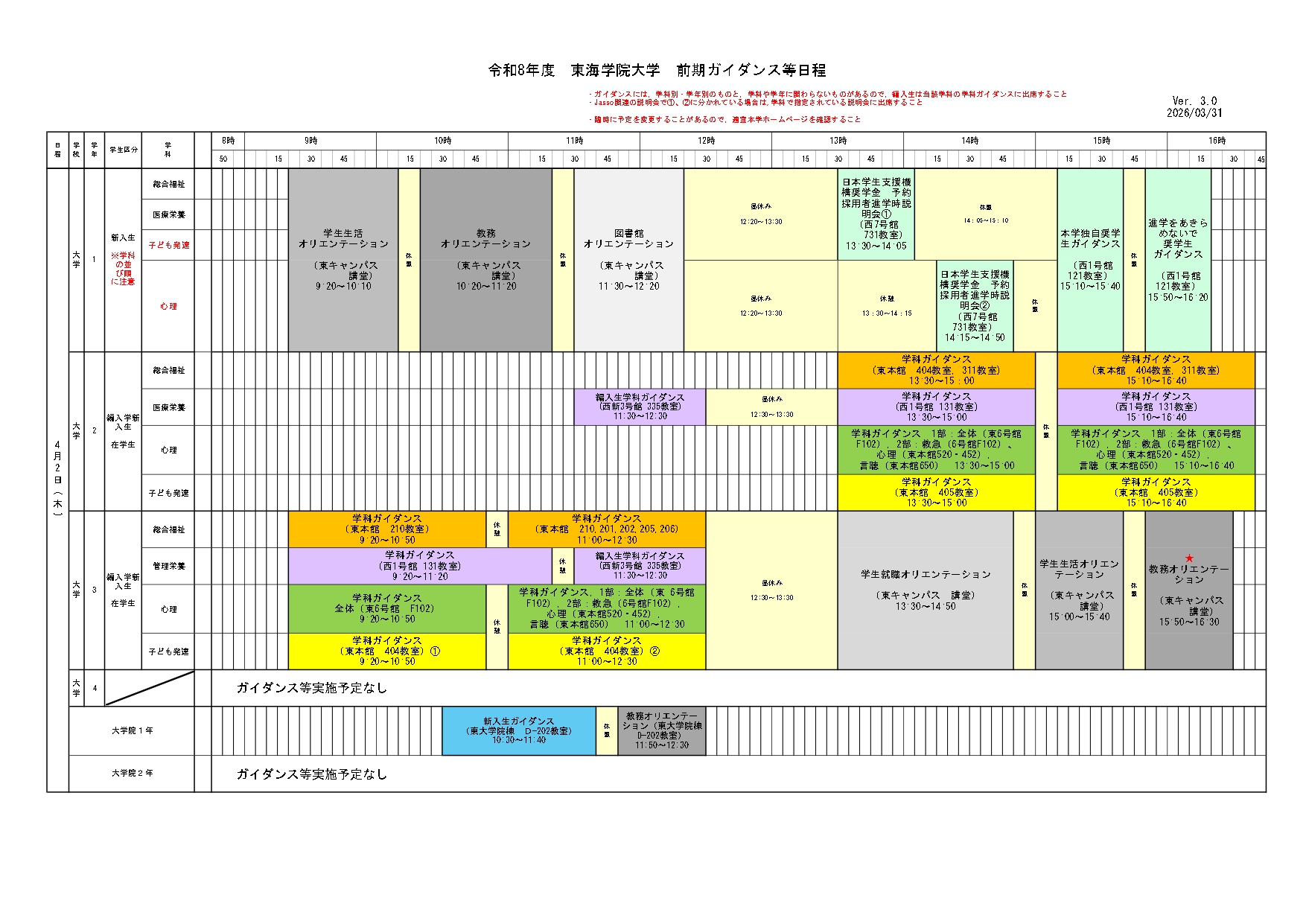 ホーム › 重要なお知らせ › 令和8年度学事日程、前期ガイダンス等日程について 重要なお知らせ 令和8年度学事日程、前期ガイダンス等日程について 2026年03月13日 ↓下記のPDF版はこちら〈令和8年度前期ガイダンス等(大学)〉 ↓下記のPDF版はこちら〈令和8年度前期ガイダンス等(短大)〉 < > 新着情報 新着情報 お知らせ 在学生 地域・社会 重要なお知らせ 研究活動 教員紹介 研究活動にかかる規程類 科学研究費助成事業研究倫理 トピックス 研究報告 産学官連携 公開講座 通報窓口 イベント オープンキャンパス 公開講座 その他イベント