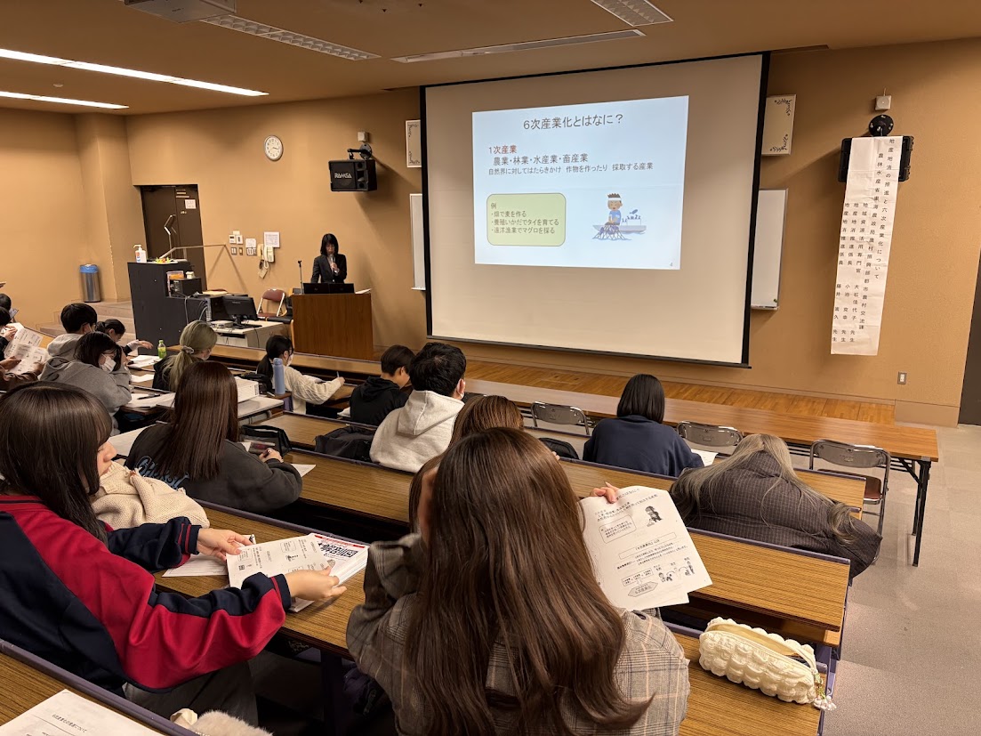 東海学院大学医療栄養学科の1年生が、農林水産省東海農政局「六次産業化について」農林水産省東海農政局農村振興部都市農村交流課 地域資源活用専門官 大石 佳代子 氏、地産地消推進係長 小池 克幸 氏、地産地消推進係 藤井 嵩久 氏よりお話をお伺いしました。「さつまいも」の六次産業化を具体的に学生が提案するなど、具体的な学びもあり、大変良い学びの機会になりました。