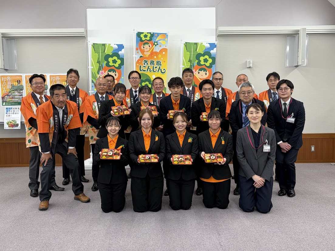 東海学院大学医療栄養学科の学生が考案し、マックスバリュ東海様、JA全農岐阜様、JAぎふ様、各務原市様と産学官連携にて開発した「7代目生彩弁当」が、11月22日からマックスバリュ東海様の7県(神奈川県、山梨県、静岡県、三重県、愛知県、岐阜県、滋賀県)243店舗にて販売開始となります。完成した「7代目生彩弁当」を各務原市長様へ報告して参りました。