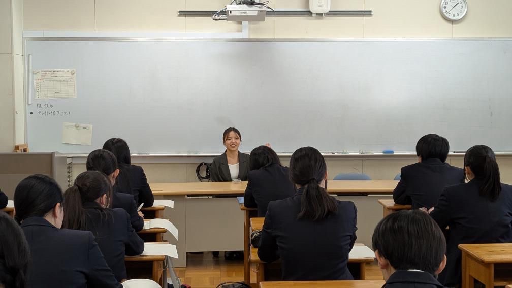 ホーム › 新着情報 › お知らせ › 【TGU医療栄養学科】高校生へ日頃のプロジェクト活動を紹介 お知らせ 【TGU医療栄養学科】高校生へ日頃のプロジェクト活動を紹介 2025年11月20日 東海学院大学医療栄養学科4年の村瀬穂ノ香さんが、岐阜県立岐阜総合学園高校の2年生に、医療栄養学科の学生有志で活動しているプロジェクトの取組について紹介し、持続可能な食と農について理解の促進を図りました。 < > 新着情報 新着情報 お知らせ 在学生 地域・社会 重要なお知らせ 研究活動 教員紹介 研究活動にかかる規程類 科学研究費助成事業研究倫理 トピックス 研究報告 産学官連携 公開講座 通報窓口 イベント オープンキャンパス 公開講座 その他イベント