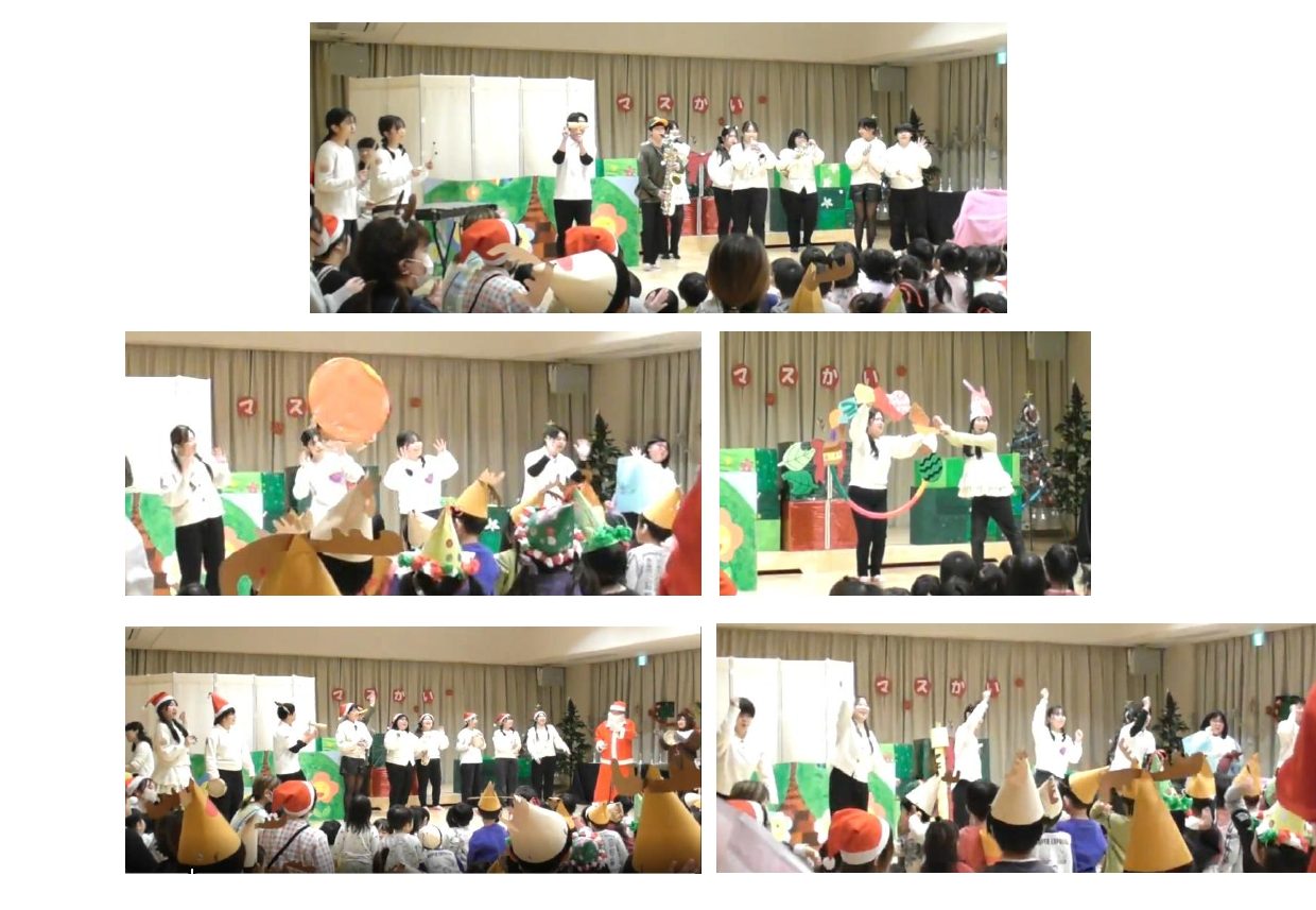 この日に向け帽子や飾りの製作やクリスマスの歌を歌うことを通して園児の皆さんの気持ちを高めてくださったこともあり、学生もそのパワーをたくさんいただきアドリブも続出で、なりきって演じることができました。あっという間の時間で名残惜しかったです。今年度も楽しさあふれるこのような機会をいただき御礼申し上げます。