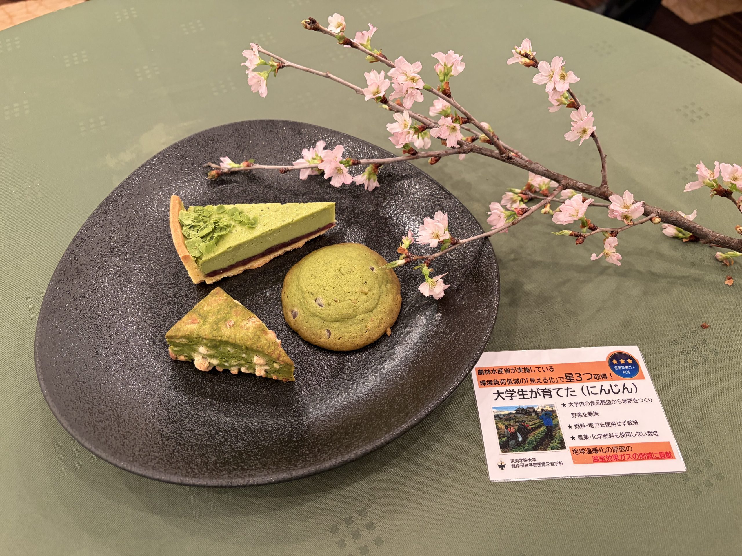 医療栄養学科の学生20名が、JA全農岐阜様の依頼を受け、『美濃いび抹茶』を使ったスイーツを岐阜グランドホテル様のご協力の下、3品商品化しました。学生が栽培している『各務原にんじん』やおからなど栄養価にもこだわった『美濃いび抹茶スイーツ』が完成し、3月15日から岐阜グランドホテルにて販売開始となります。また、4月~6月には美濃いび抹茶アフタヌーンティーセットとして登場します。是非お召し上がりください。