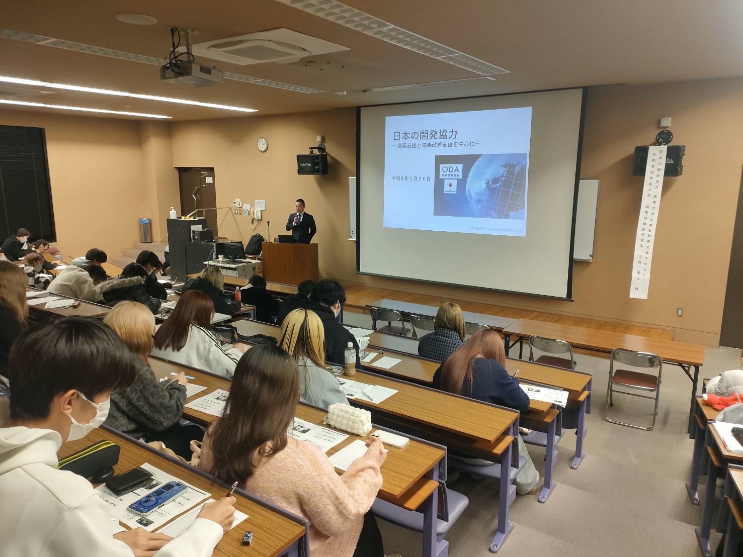 ホーム › 新着情報 › お知らせ › 【TGU医療栄養学科】外務省による特別講座「日本の開発協力について」を開催しました お知らせ 【TGU医療栄養学科】外務省による特別講座「日本の開発協力について」を開催しました 2026年01月26日 医療栄養学科の1年生が、『日本の開発協力について』外務省国際協力局国際保健戦略官室外交実務研修員 可児 優太 氏よりお話を伺いしました。学生たちは、日本の国際協について農業支援と栄養改善支援を中心に学び、理解を深めました。大変良い学びの機会となりました。 < > 新着情報 新着情報 お知らせ 在学生 地域・社会 重要なお知らせ 研究活動 教員紹介 研究活動にかかる規程類 科学研究費助成事業研究倫理 トピックス 研究報告 産学官連携 公開講座 通報窓口 イベント オープンキャンパス 公開講座 その他イベント
