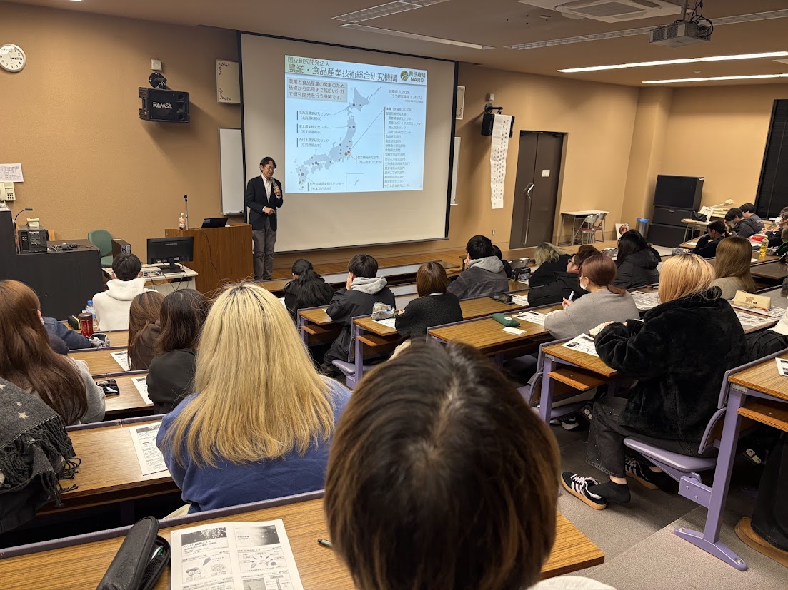 東海学院大学医療栄養学科の1年生が『ゲノム編集技術による品種改良の加速化・効率化』について 国立研究開発法人 農業・食品産業技術総合研究機構(農研機構) 企画戦略本部 新技術対策課ELSIチーム 上級研究員 四方 雅仁 氏よりお話をお伺いしました。学生からのたくさんの質問があり、関心の高さがうかがえました。大変良い学びの機会となりました。