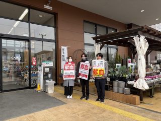 医療栄養学科の岐阜県学生献血ボランティア学生が、岐阜県様、岐阜県赤十字血液センター様と連携し、献血者の減少する冬の時期に、献血caféを出店し、献血を呼びかけました。関市のカインズ関には、雨で肌寒い中多くの皆様に献血にご協力をいただくことができました。次回1月31日モレラ岐阜にて出店します。