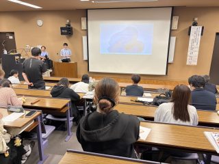 農林水産省 名古屋植物防疫所 植物検疫官 恩田 加菜 先生、関東 準之助 先生より『植物防疫所の取組について』というテーマでお話をお伺いいたしました。講義終了後にはたくさんの質問があり、関心の高さがうかがえました。大変良い学びの機会になりました。